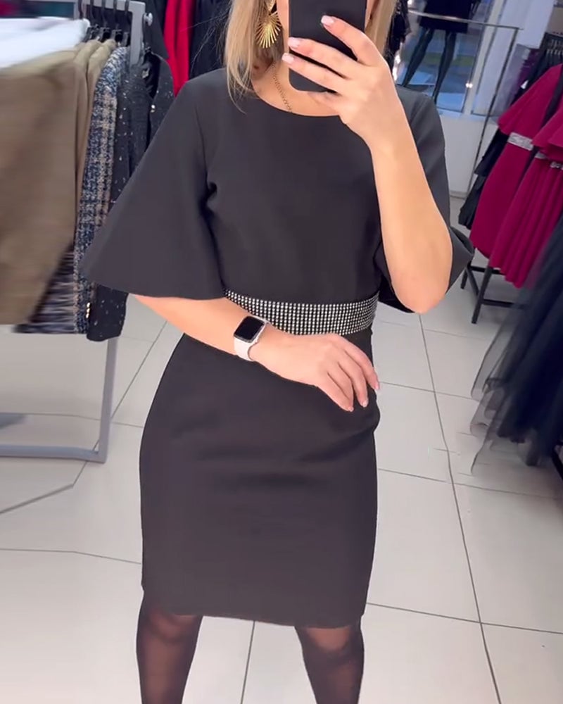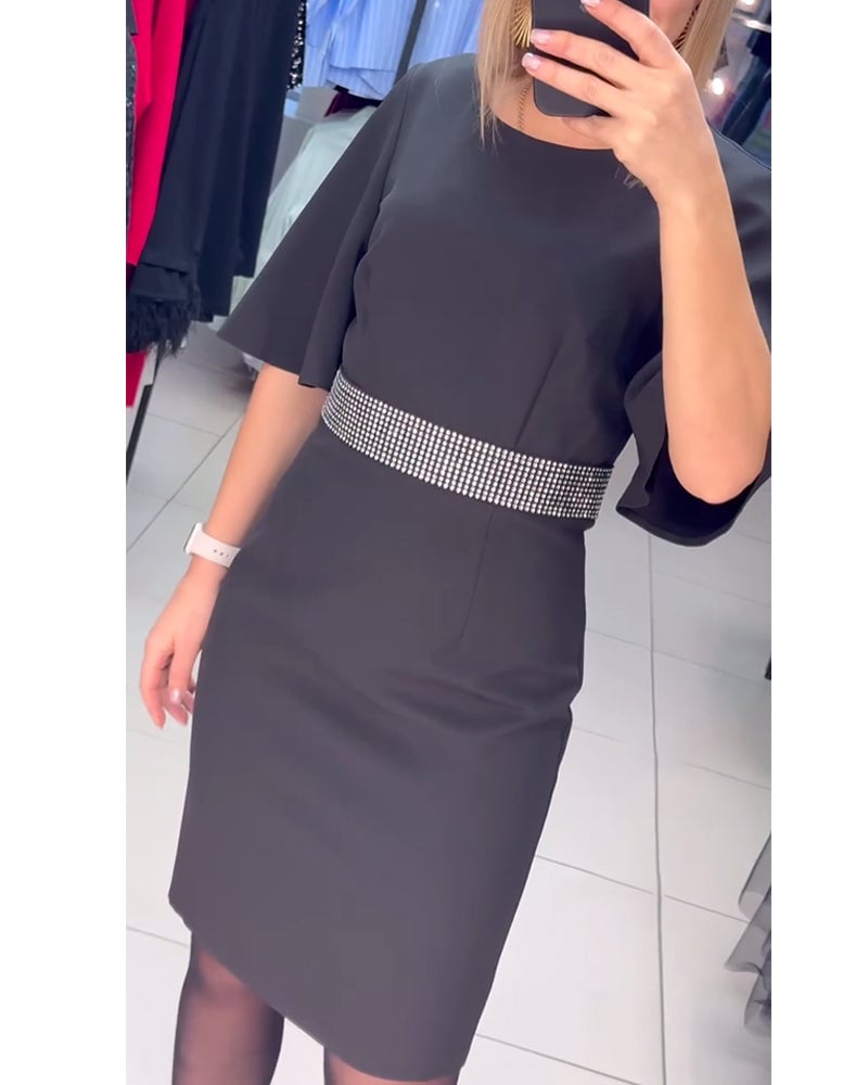Kleid Rundhals Ausgestellt Halbarm Taille