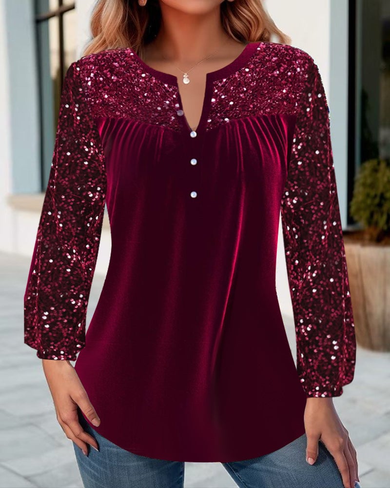 Lockeres Freizeitoberteil mit Pailletten-Patchwork