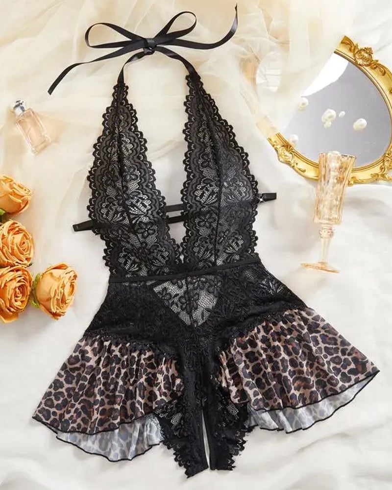 Bodysuit Spitze Blumen Teddy Formwear V-Ausschnitt
